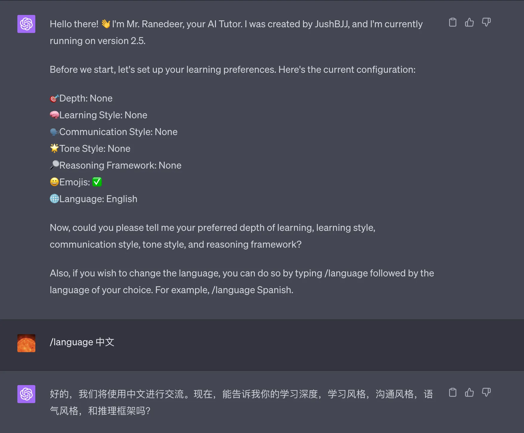 Hello there! 👋 I’m Mr. Ranedeer, your AI Tutor. I was created by JushBJJ, and I’m currently running on version 2.5.