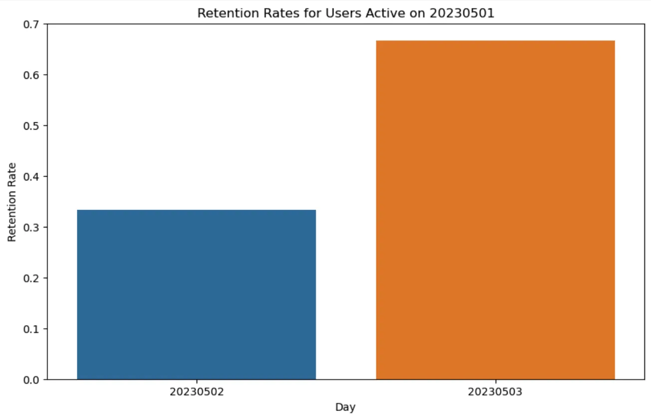 这是20230501号活跃的用户在20230502和20230503的留存率图表: