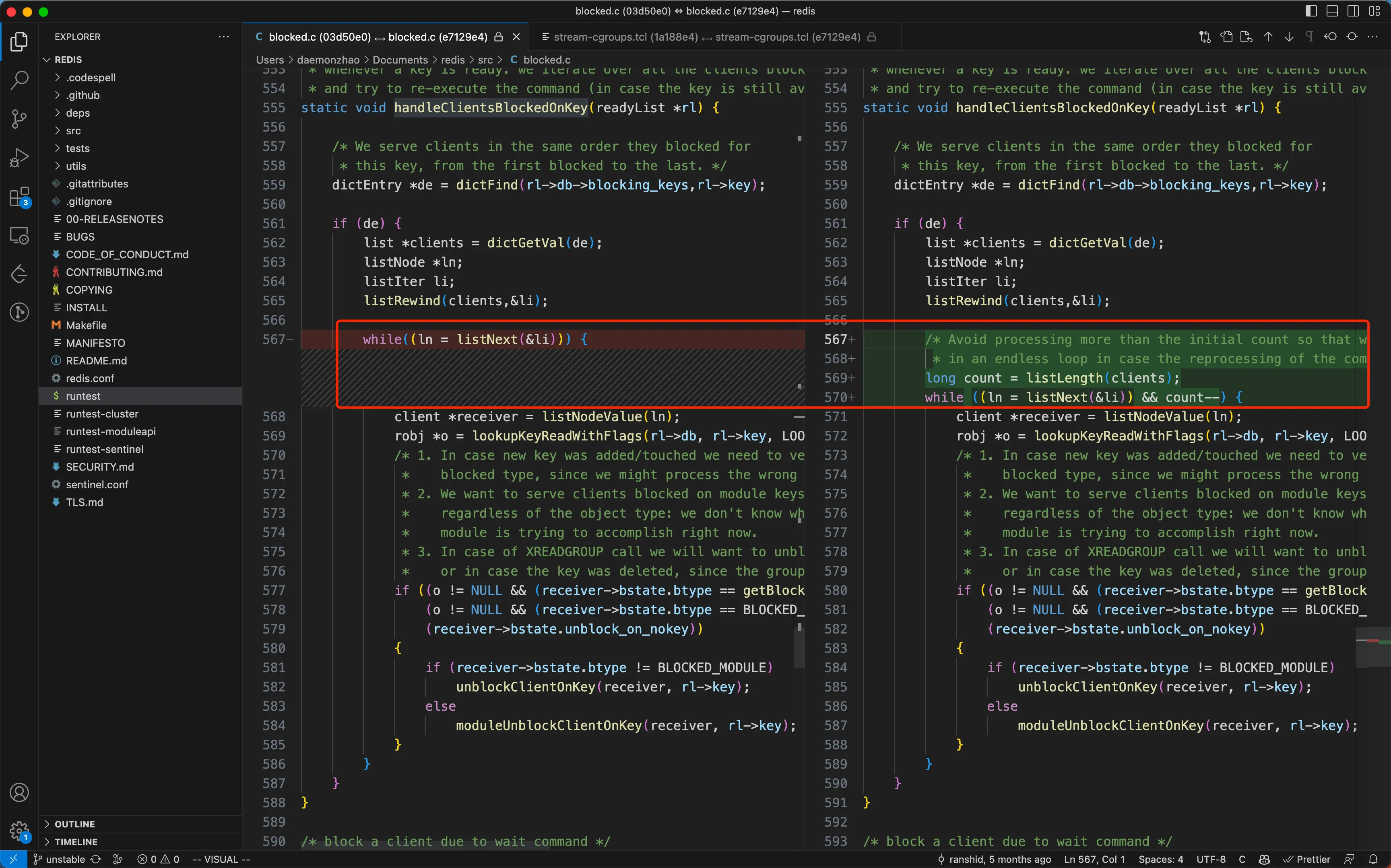 这里的修复用的是一个比较 trick 的方法,保证这里一次只处理完队列里当前时刻有的 client,新加入的 client 并不处理。具体提交是 commit e7129e43e0c7c85921666018b68f5b729218d31e ,提交信息描述了这个问题
