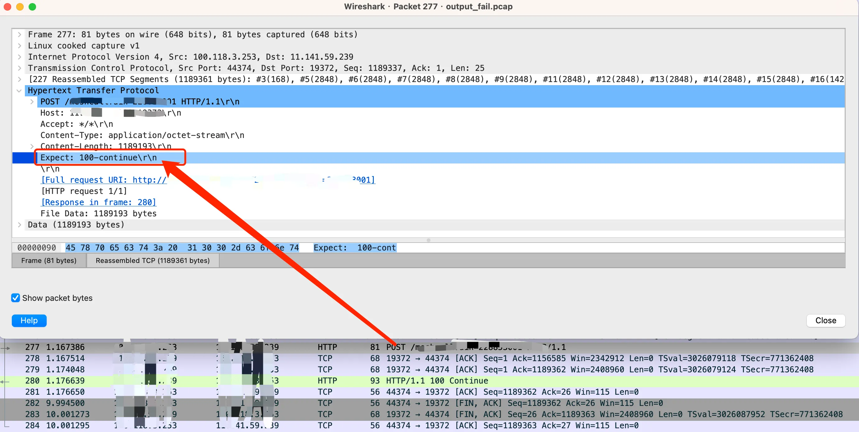 WireShark 抓包 HTTP expect: 100-continue 的包
