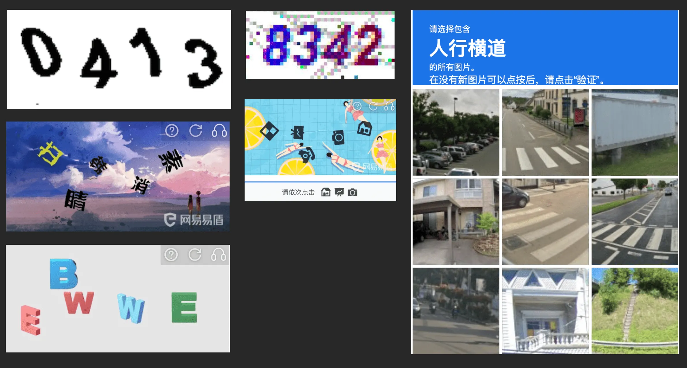 下图展示了部分常见的验证码: