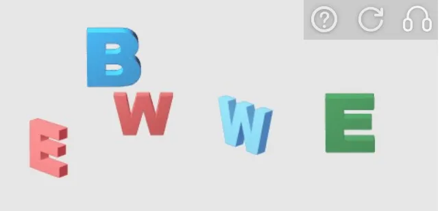 先确定上面图片的尺寸,然后用一个方框定位图片里所有字母的位置,然后给出和绿色大写E朝向一样的大写W 的位置,注意这里字母位置是说字母的摆放角度朝向。