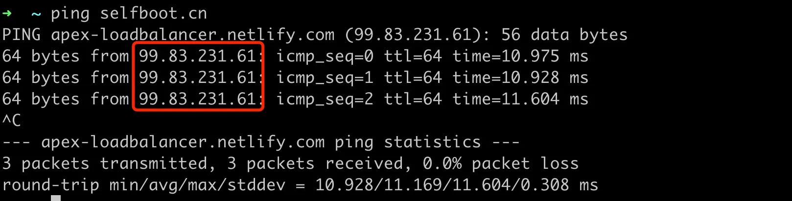 这里域名改成自己的,然后如果返回 ip 地址是购买海外服务器的公网地址,就说明域名配置正确了。