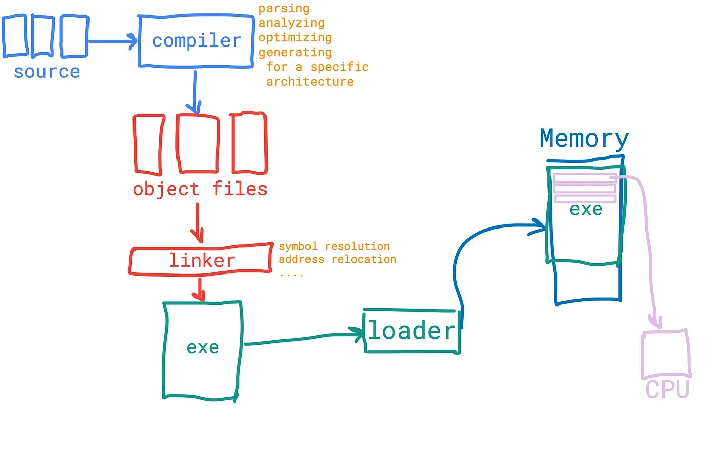 The above assumes that the linker reads a set of relocatable object files, but in reality, it can link libraries. For static libraries, it’s a collection of linked relocatable object files, with a header describing the size and location of each member object file, identified by the suffix .a.