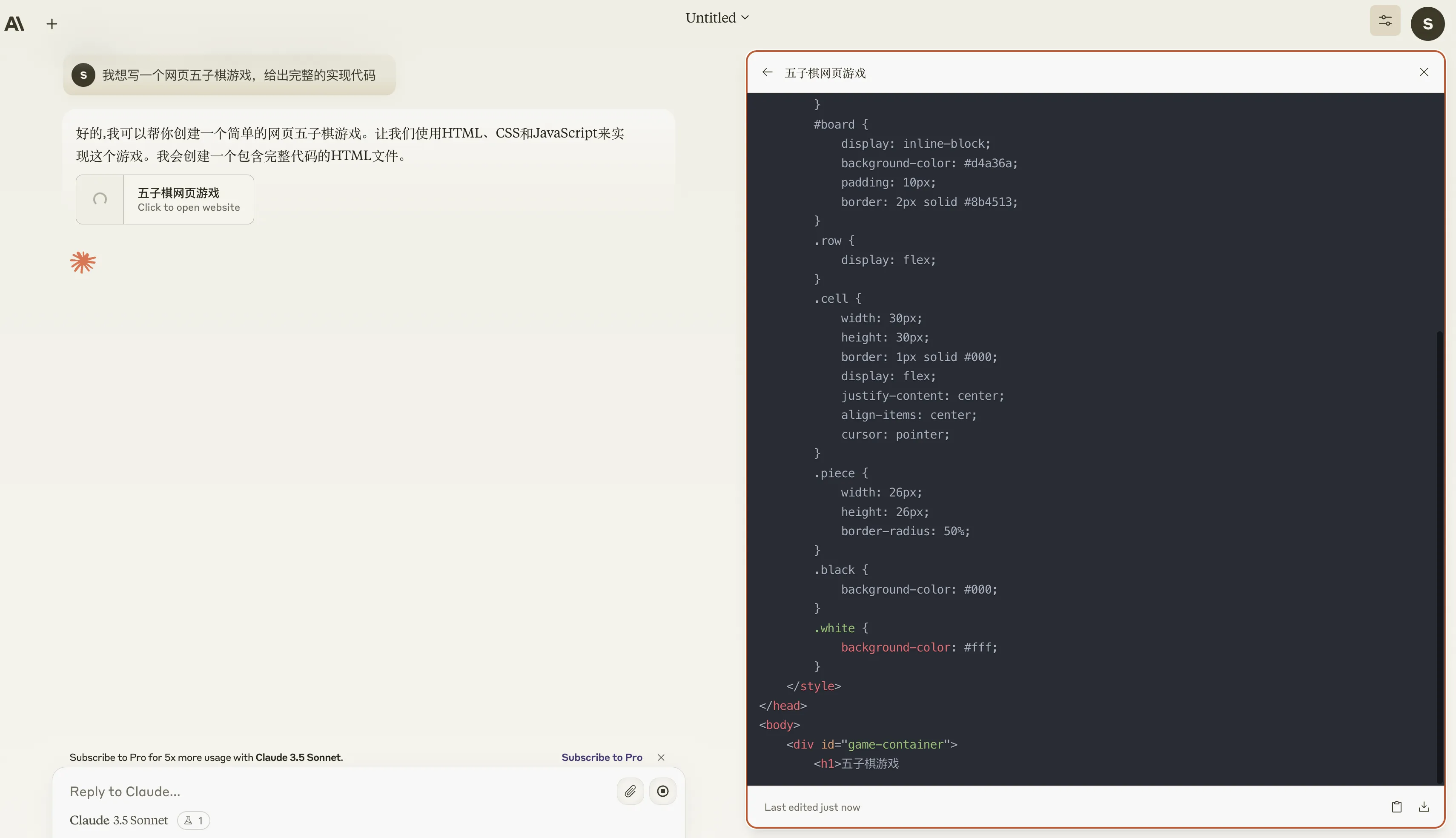 First, I tried to let Claude implement a web version of the Gomoku game. My prompt was also very simple: