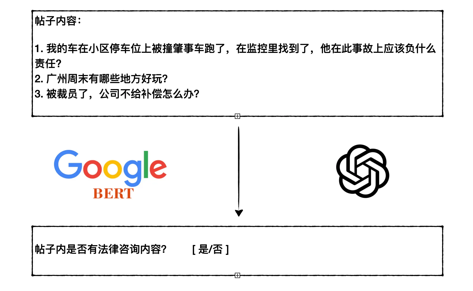 之前帮小盛律师 做过一个工具,定期从网上筛选一些帖子,看看是不是法律咨询类的。这里就需要对文本进行分类,判断指定帖子正文是不是涉及到法律问题。作为一个后台开发,没接触过自然语言处理,也就之前读书的时候,了解过一些机器学习的基本原理,但是也没有实际做过分类任务。好在现在有 ChatGPT,于是就用它的 API 来做分类。