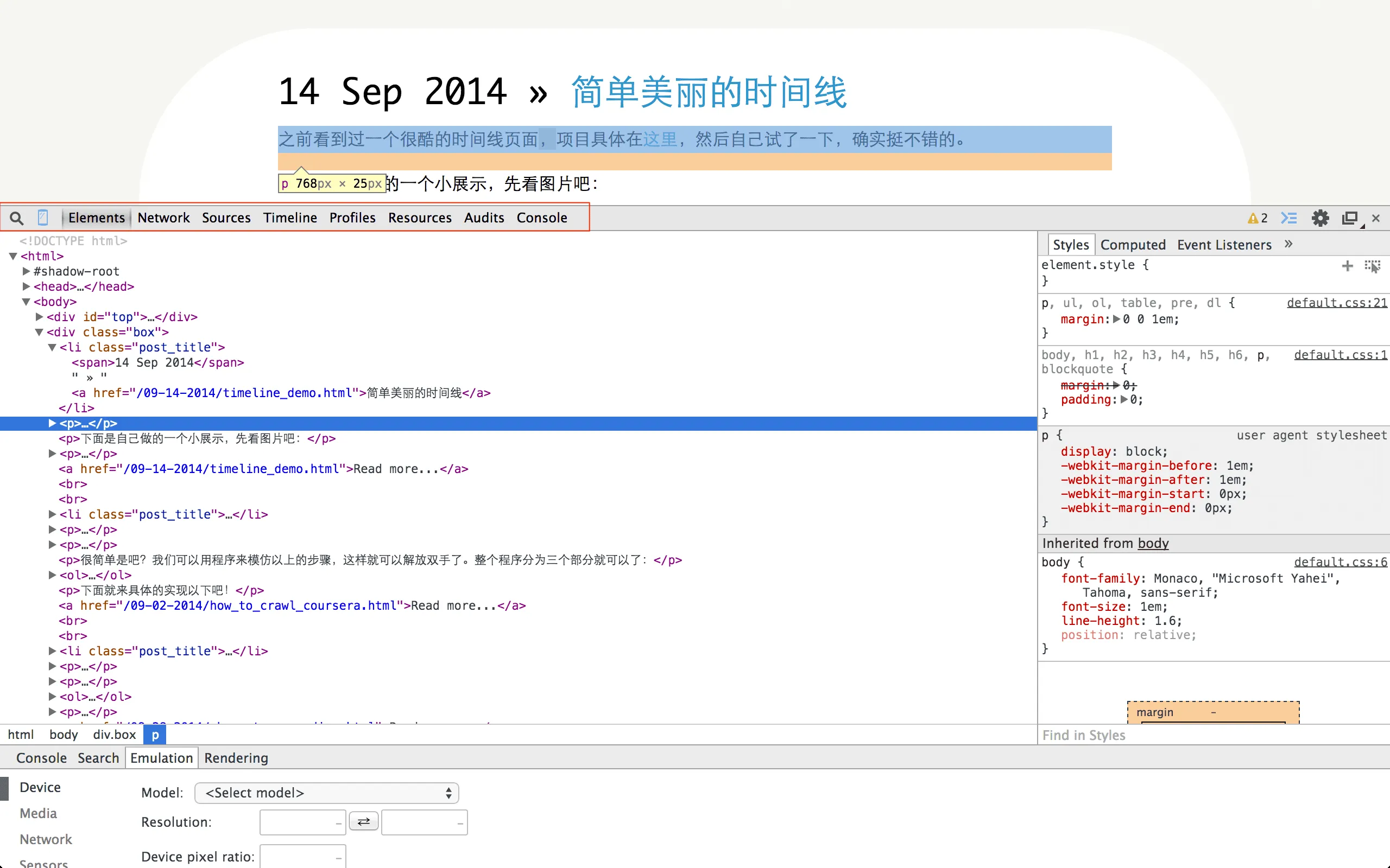 这里我假设你用的是Chrome浏览器,如果恰好你做web开发,或者是比较好奇网页中的一些渲染效果并且喜欢折腾,那么你一定知道Chrome的开发者工具了。其实其他浏览器也有类似工具,比如Firefox下的firebug。本文将会详细讲述如何使用Chrome开发者工具,希望里面有些让你感到惊艳的东西!即使你不用Chrome,那么文中的某些内容也会相当有用。